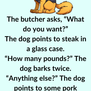 A Dog Walks Into A Butcher Shop. The butcher asks, “What do you want?” The dog points to steak in a glass case. “How many pounds?” The…