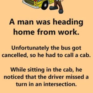 A man was heading home from work. Unfortunately the bus got cancelled, so he had to call a cab. While sitting in the cab, he noticed that…