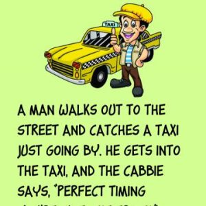 A man walks out to the street and catches a taxi just going by. He gets into the taxi, and the cabbie says, “Perfect timing You’re just…