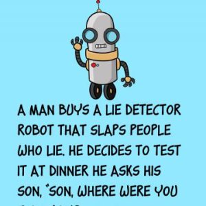 A man buys a lie detector robot that slaps people who lie. He decides to test it at dinner He asks his son, “Son, where were you…