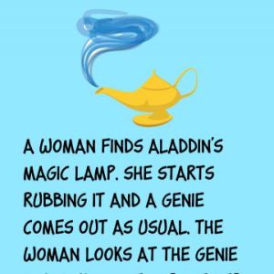A woman finds Aladdin’s magic lamp. She starts rubbing it and a Genie comes out as usual. The woman looks at the Genie and asks him to…
