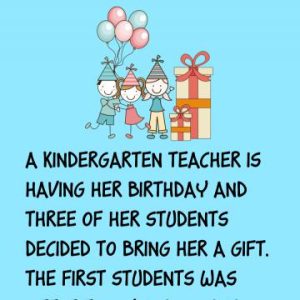 A kindergarten teacher is having her birthday and three of her students decided to bring her a gift. The first students was little Timmy and his dad…