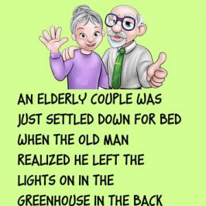An elderly couple was just settled down for bed when the old man realized he left the lights on in the greenhouse in the back yard. Then…