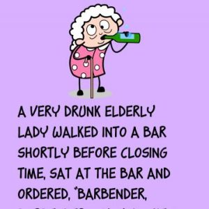 A very drunk elderly lady walked into a bar shortly before closing time, sat at the bar and ordered, “Barbender, barbender, I would like a Martoutsy.” The…