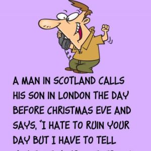 A man in Scotland calls his son in London the day before Christmas Eve and says, “I hate to ruin your day but I have to tell…