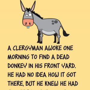 A clergyman awoke one morning to find a dead donkey in his front yard. He had no idea how it got there, but he knew he had…