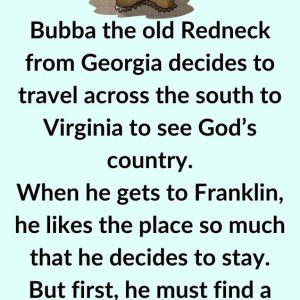 Bubba the old Redneck from Georgia decides to travel across the south to Virginia to see God’s country. When he gets to Franklin, he likes the place…