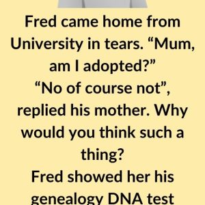 Fred came home from University in tears. “Mum, am I adopted?” “No of course not”, replied his mother. Why would you think such a thing? Fred showed…