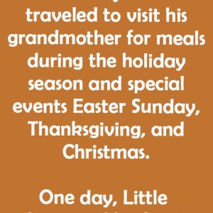 Little Johnny and his family often traveled to visit his grandmother for meals during the holiday season and special events Easter Sunday, Thanksgiving, and Christmas. One day,…