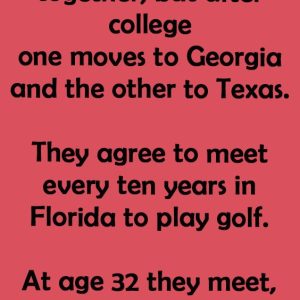 Two guys grow up together, but after college one moves to Georgia and the other to Texas.They agree to meet every ten years in Florida to play…