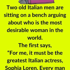 Two old Italian men are sitting on a bench arguing about who is the most desirable woman in the world. The first says, “For me, it must…