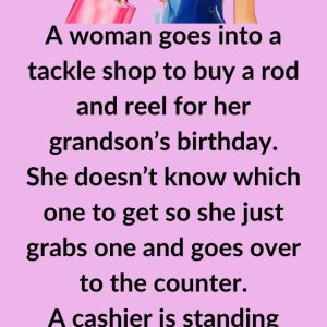 A woman goes into a tackle shop to buy a rod and reel for her grandson’s birthday. She doesn’t know which one to get so she just…