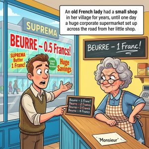 An old French lady had a small shop in her village for years, until one day a huge corporate supermarket set up across the road from her…