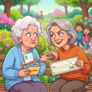 Two old ladies Dolly and Ruby were talking about their grandchildren. Dolly said, “Each year I send each of my grandchildren a card with a generous cheque…