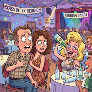 A man and his wife are at a high school reunion and the husband keeps staring at a gorgeous drunken lady swigging her gin at a nearby…