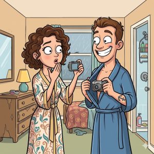 On their first night together, a newlywed couple go to change. The new bride comes out of the bathroom showered and wearing a beautiful robe. The proud…