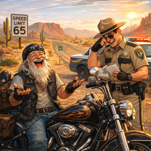 An Arizona Highway Patrol officer stops a Harley for traveling faster than the posted speed limit:He asks the old biker his name.“Fred.” He replies.“Fred what?” The officer…