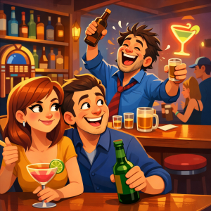A Couple Goes In A Bar The wife says,“Hey! Look at that funny guy who’s been drinking a lot.” The husband responds,“Who is he?” The wife answers,“Well,…