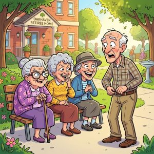 Three mischievous old Grannies were sitting on a bench outside a nursing home. When an old Grandpa walked by. And one of the old Grandmas yelled out…