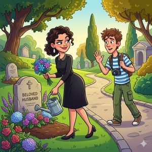 A young widow would come to her husband’s grave weekly to water the flowers. Then, every time, she would walk away with her back turned. A young…