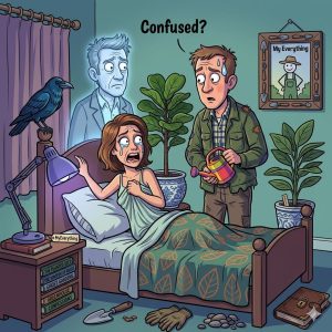 Out of the blue, the light on the stairs goes on, and the girl’s older sister shows up in her pyjamas, hair dishevelled, and in a sleepy voice, she says: “Dad says to go ahead and take him upstairs if you want, or I can do it, or if need be, mum says she can come down herself and do it, but for God’s sake, tell him to take his hand off the intercom!”