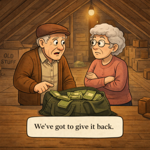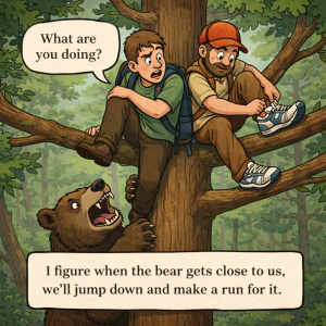 Dad says, “What? At your age I didn’t even know what horn was.”