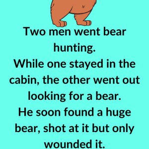 Two men went bear hunting. While one stayed in the cabin, the other went out looking for a bear. He soon found a huge bear, shot at…