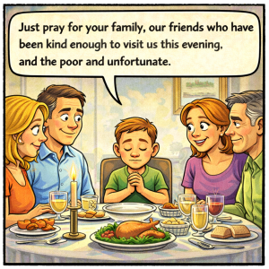 At dinner, with his parents’ friends, little Johnny was asked to lead the prayer. “But I don’t know how to pray,” he replied. His father said. “Just…