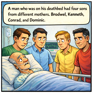 A man who was on his deathbed had four sons from different mothers: Brodwel, Kenneth, Conrad, and Dominic. At the hospital, the boys called a meeting with…