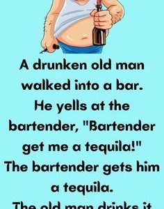 A drunken old man walked into a bar. He yells at the bartender, “Bartender get me a tequila!” The bartender gets him a tequila. The old man…