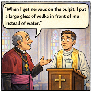 A new priest at his very first Mass was so nervous he could hardly speak and delivered an awful sermon. Afterward, he asked the monsignor for advice on…