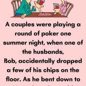 A couples were playing a round of poker one summer night, when one of the husbands, Bob, accidentally dropped a few of his chips on the floor….