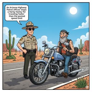 An Arizona Highway Patrol officer stops a Harley for traveling faster than the posted speed limit: He asks the old biker his name.“Fred.” He replies. “Fred what?”…