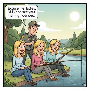 Three blondes were sitting by the side of a river holding fishing poles with the lines in the water. A game warden came up behind them, tapped…