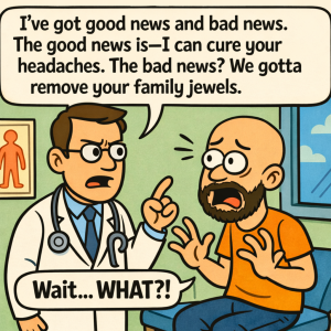 The doctor looked Joe straight in the eye and said, “I’ve got good news and bad news. The good news is—I can cure your headaches. The bad…