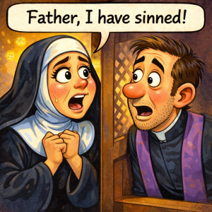 In a moment of confession, a nun revealed to the priest, “Father, I have sinned. We took in a homeless man and gave him shelter, but I…