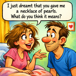 A young woman was taking an afternoon nap. After she woke up, she told her husband: “I just dreamt that you gave me a necklace of pearls….