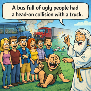 A bus full of ugly people had a head-on collision with a truck. When they died, God granted all of them one wish. The first person said,…