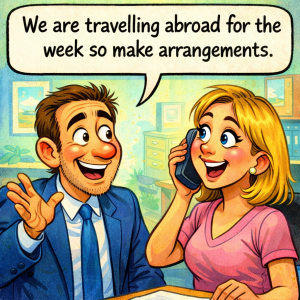 A boss says to his secretary, “we are travelling abroad for the week so make arrangements.” The secretary makes call to her husband, “my boss and i…