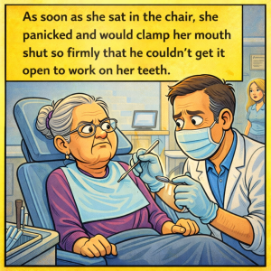 One afternoon, on about the third try to treat the old lady, the dentist figured out a way to get the job done. He excused himself from…
