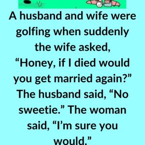 A husband and wife were golfing when suddenly the wife asked, “Honey, if I died would you get married again?” The husband said, “No sweetie.” The woman…