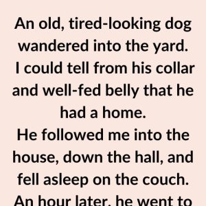 An old, tired-looking dog wandered into the yard. I could tell from his collar and well-fed belly that he had a home. He followed me into the…