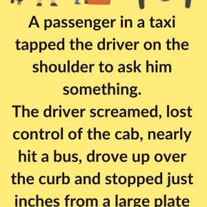 A passenger in a taxi tapped the driver on the shoulder to ask him something. The driver screamed, lost control of the cab, nearly hit a bus,…