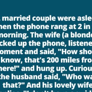 A married couple were asleep when the phone rang at 2 in the morning. The wife (a blonde), picked up the phone, listened a moment and said,…