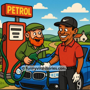 While on a golf tour in Ireland, Tiger Woods pulls up to a petrol station in the middle of the Irish countryside in his BMW. The attendant,…