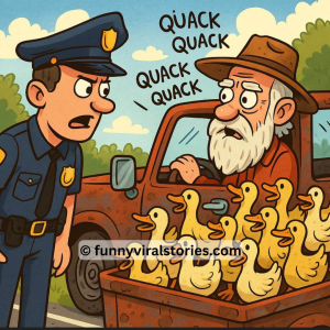 A policeman spots an old man driving a rusty pickup truck, its bed overflowing with ducks quacking noisily as they jostle for space. The officer pulls him…