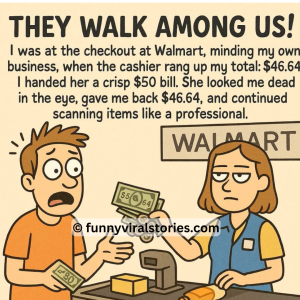 I was at the checkout at Walmart, minding my own business, when the cashier rang up my total: $46.64. I handed her a crisp $50 bill. She…