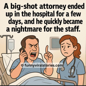 A big-shot attorney ended up in the hospital for a few days, and he quickly became a nightmare for the staff. He treated the nurses like they…