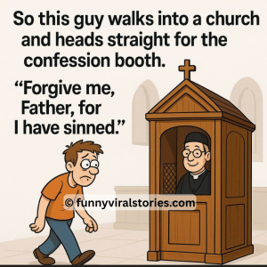 So this guy walks into a church and heads straight for the confession booth. “Forgive me, Father, for I have sinned.” The priest says, “Alright, my son,…