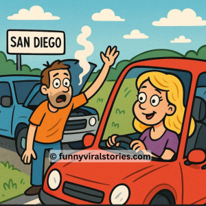 A blonde woman was driving about two hours outside of San Diego when she noticed a man waving her down on the side of the road. His…